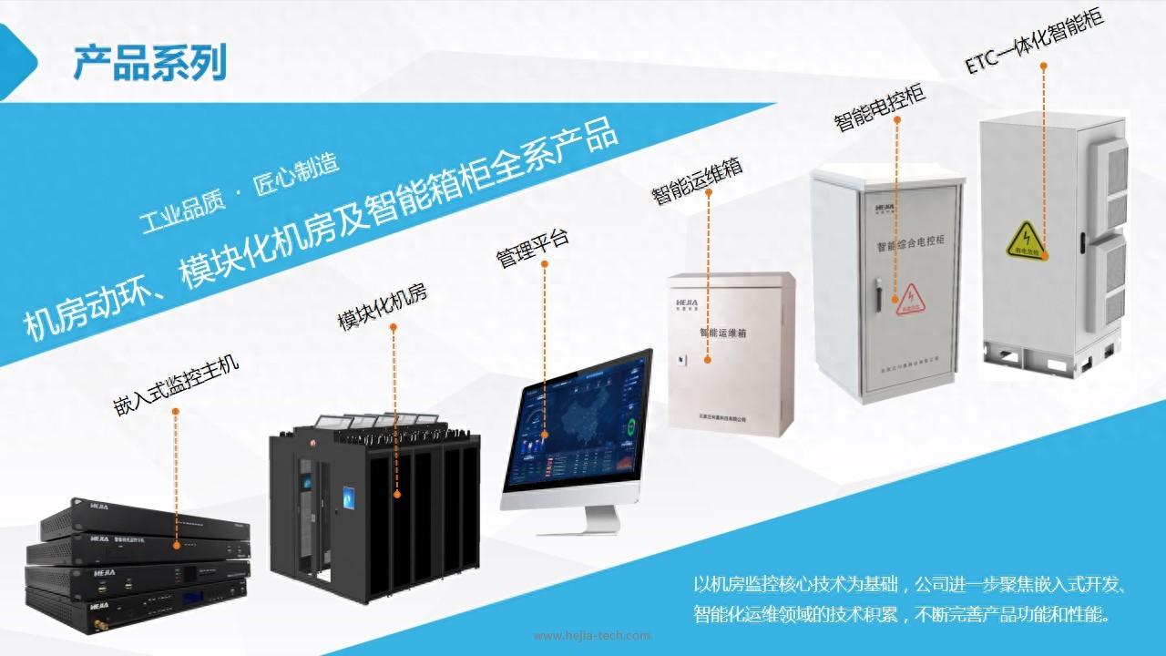 目前主要有智能运维箱、PEMS机房动力环境监控系统、模块化机房、ETC一体机智能机柜、智能电控柜等产品。