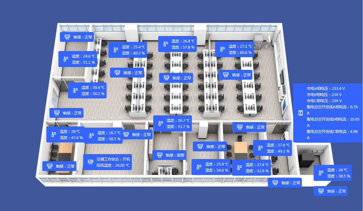 通过机房动环监控系统,现代机房可实现7*24小时无人值守、少人检修,集中监控,智能管理,帮助企业降本增效,机房安全稳定运行。